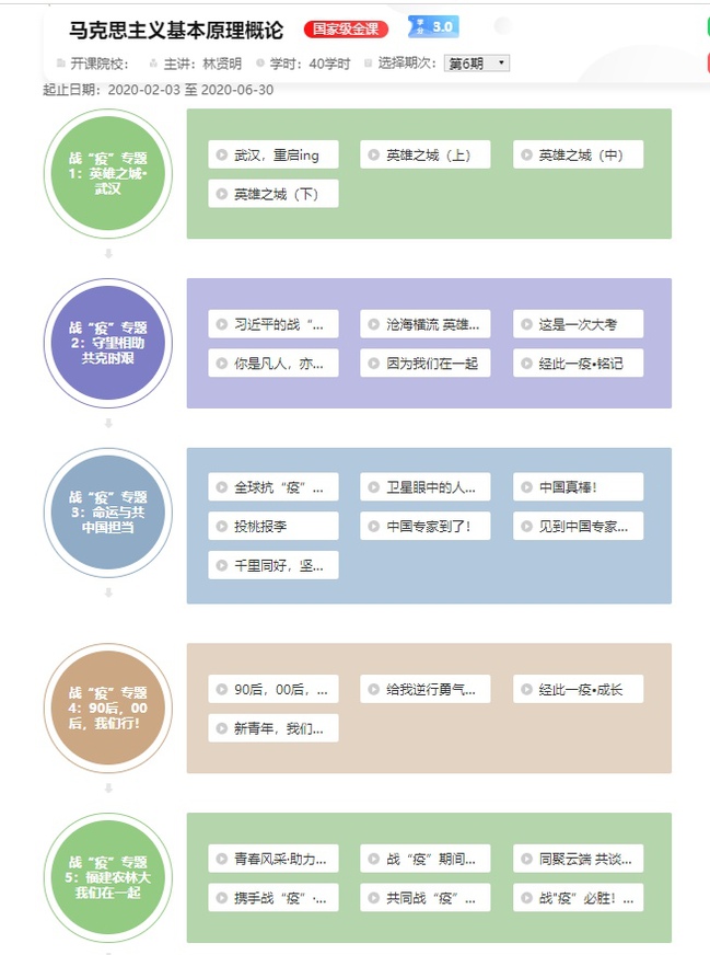 在疫情防控和复工复产期间,开元kaiyuan(中国)“马克思主义基本原理概论”充分发挥国家精品在线开放课程的示范性和引领性,在“中国大学MOOC”和“学银在线”两大在线教育平台同时开课,为“停课不停教、停课不停学”提供优质的在线教学资源,课程作为教学示范包,被300多个院校引用作为教学资源。“马克思主义基本原理概论”教研室,发挥教学团队的整体实力,团结协作,守正创新,多措并举打造有思想性、理论性、针对性和亲和力的云端“四有”原理课。