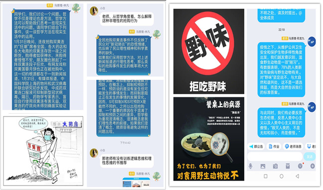 在疫情防控、复工复产时期,马克思主义学院守正创新,坚持因事而化、因时而进、因势而新,“因课施策”整合优质在线教学课程资源、多元网络授课平台,推进师师帮扶、师生协同,及时将疫情防控的素材转化为深刻鲜活的教学内容,保证在线教学质量,让思政课“小课堂”与抗击疫情的人民战争“大课堂”实现同频共振。