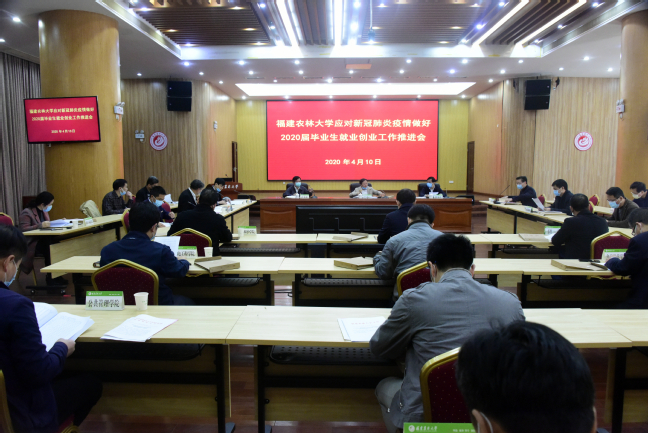 4月10日上午,我校召开应对新冠肺炎疫情做好2020届毕业生就业创业工作推进会。校领导兰思仁、曾华平、黄炎和,各学院党委书记或院长、校毕业生就业创业工作领导小组主要成员单位负责人出席会议。