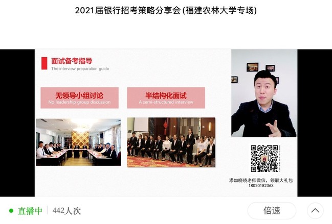 分享会上,梅高翔从“银行招聘概述”、“网申策略指导”、“笔试技巧分享”和“面试高分策略”四个方面,系统介绍了银行招聘流程和注意事项。他结合实际案例剖析了银行备考生面临的疑惑,同时解答了一些同学在讨论区提出的问题,助力有志从事银行工作的学生全面深入了解银行招聘信息,提升简历制作、笔试和面试技能,提高求职成功率。