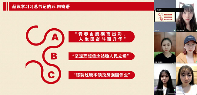计算机与信息学院团委书记王晓说:习近平总书记五四青年节前夕寄语新时代青年,肯定了抗击新冠肺炎疫情中青年的担当作为,指明了“青春由磨砺而出彩,人生因奋斗而升华”的青年成长路径,对青年提出殷切期望。作为一名基层团组织工作者,我将牢记总书记寄语,立足岗位团结带领团员青年为实现中华民族伟大复兴的中国梦不懈奋斗!