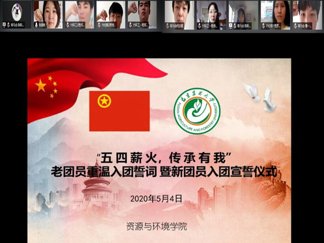5月4日上午,资源与环境学院举办“五四薪火,传承有我”老团员重温誓词暨新团员入团线上宣誓仪式。学院团委书记张锦艳主持宣誓仪式并领誓。老团员重温入团誓词暨新团员入团宣誓仪式新老团员代表发言学院新老团员面对团旗庄严宣誓,入团介绍人周婉婷同学宣读团员权利和义务,新团员代表郑欣和、老团员代表杨婕玲先后表态发言。张锦艳希望全院共青团员,时刻牢记使命,弘扬和传承五四精神,练就过硬本领,锤炼高尚品格、增长能力才干,做好党的助手和后备军。