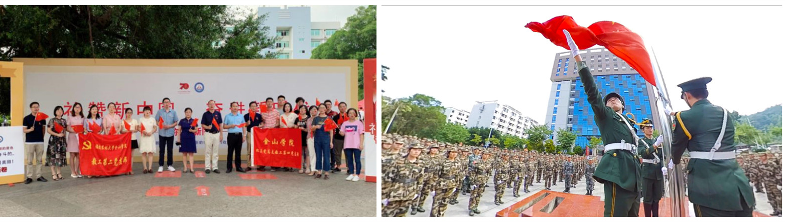 强化思想引领,壮大主流思想舆论。在各类媒体共发表党建相关稿件404篇,其中,校外媒体71篇,学校官网52篇,面向师生刊发《金山学子》8期,印刷3000余份,《征程》2期,印刷2500份;充分发挥学院团委“彼小星+”思政工作平台作用,推进落实青马工程“柏风计划”,举办两期学生干部思想政治培训班,完成565名学生干部培训任务;组织开展“唱响国歌,献礼新中国成立70周年”系列活动;深入实施大学生马克思主义自主学习行动计划,开展院级第三季学生学习马克思主义理论“一‘马’当先”知识竞赛活动,5名学生参加省级比赛,其中,1名学生获得晋级赛个人优胜奖,并进入总决赛竞答团;广泛开展爱国主义教育系列活动、先进人物引领教育活动,传承榜样力量,1名新生参加校新生先进人物引领教育活动分享。