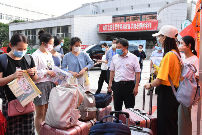据悉,首批返校复学的学生报到时间为5月18日至19日,包括博士生和有教学科研任务的硕士毕业生、本科毕业生。学校在福州火车站北站、南站,长乐国际机场等地设立接站点,迎接学生返校。在金山校区东门、东苑公寓、西南门、南门区域设置学生报到疏导点,返校学生在工作人员的引导下进行测量体温、身份核验、扫码报到、行李消毒、领取健康礼包等流程,按照指定的路线井然有序地入校报到。除金山校区外,旗山校区、南平校区今天也迎来了首批返校的学生,安溪校区明天将迎来首批返校学生。