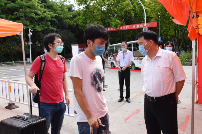 5月18日,按照分批次错峰返校要求,我校迎来2020年春季学期首批返校学生。校党委书记严金静、校长兰思仁深入各报到点和学生宿舍,看望慰问首批返校学生和一线工作人员。