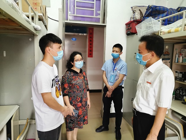 5月19日上午,副校长郑宝东与林学院、资源与环境学院负责人一同到东苑、南苑学生公寓看望林学院和资环学院第一批返校学生。看望林学院返校学生看望资环学院返校学生郑宝东与返校学生亲切交谈,对同学们平安健康返校表示欢迎,询问了解同学们返校后的身体、心理状况,学习、生活需求,提醒同学们做好疫情防控,加强自我防护,勉励学生练就过硬本领,努力成为社会栋梁之才。要求学院切实扛起校园疫情防控的政治责任,及时和学校相关职能部门沟通联系,协调解决好返校学生的困难和合理需求,为学生安心在校学习生活做好保障。