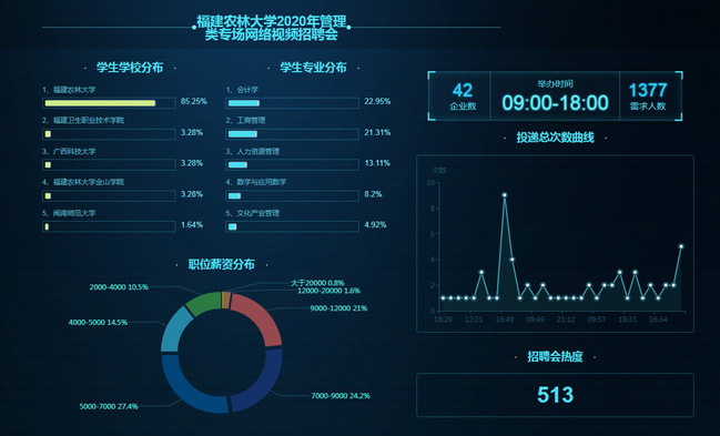 5月18日-19日,我校管理类专场空中双选会举行。本次双选会由学校主办,校大学生就业创业指导中心指导、管理学院(旅游学院)承办。 招聘会相关数据据悉,双选会共有陕西建工第十一建设集团有限公司、福州理工学院、福建龙净环保股份有限公司等42家企事业业单位参会、提供岗位1377个,毕业生共投出简历513份。