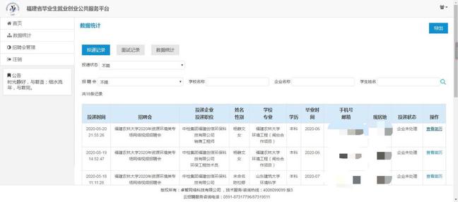 本次毕业生招聘会从五月初开始招募企业,至招聘会开始前,共吸引中检集团福建创信环保科技有限公司、福建圣农发展股份有限公司、高科环保工程集团有限公司、硕威工程科技股份有限公司等42家省内外企业参会,共计近两百个就业岗位、1689人次需求。毕业生通过网络端和移动端两种方式进行报名并投送简历后,用人单位筛选简历并向应聘人邀约进行网络视频面试。截止6月1日,已有多位同学通过本次招聘会与招聘单位达成签约意向。本次“云招聘”方式为毕业生和企业建立方便快捷的沟通桥梁,推动疫情当下毕业生就业工作顺利进行。