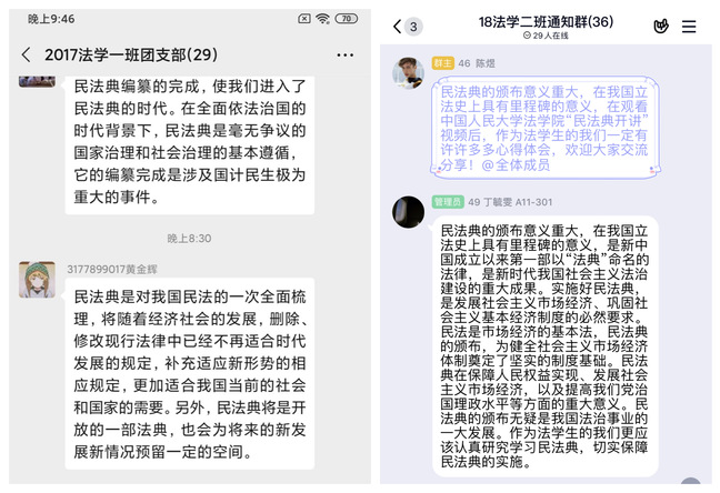 民法典是新中国成立以来第一部以“法典”命名的法律,是新时代我国社会主义法治建设的重大成果。5月28日至6月3日,公共管理学院组织学生收看由中国人民大学法学院制作的《民法典开讲》系列公益讲座,观看后同学们进行了交流讨论。