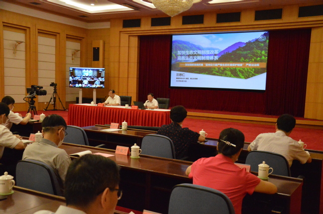 兰思仁以“加快生态文明制度改革,完善生态文明制度体系”为主题,从历史、现实、目标三个角度介绍了我国生态文明制度体系建设的历史赓续与现实发展;从以公正为导向的生态法治伦理观、以良法为目标的生态法制创设观、以双严为标准的生态法治实施观、以法治社会为中心的生态守法观、以美丽世界为愿景的全球共赢观5个方面,系统阐述了习近平生态文明思想严密法治观的丰富内涵;用大量丰富案例,从“绿起来”“严起来”“优起来”“活起来” “鼓起来”“美起来”概括了我省以生态文明试验区建设为抓手推进生态文明制度改革的特点和成效,对我省在新的起点上加快生态文明制度改革提出“处理六大关系”“坚持四个注重”的思考和建议。