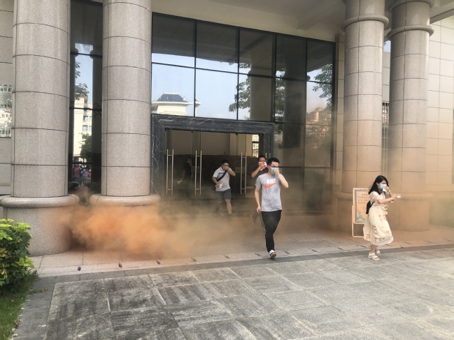 6月24日下午,材料工程学院、交通与土木工程学院在旗山校区庄启程实验楼联合开展师生消防安全应急逃生疏散演练。演练邀请校区保卫办主任李龙仲、黄事煜老师莅临现场指导。消防安全知识讲解应急逃生疏散演练本次应急逃生疏散演练是材料工程学院学习贯彻习近平总书记关于安全生产的重要论述和重要指示精神,开展2020年“安全生产月”和“八闽安全发展行”有关活动的重要内容,旨在提升师生消防安全意识,掌握火灾现场应急逃生技能和应急处置能力。