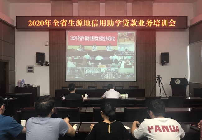 省委教育工委委员、省教育厅党组成员、副厅长李迅出席会议并讲话,省教育厅学生工作处处长杨振坦总结2019年、部署2020年生源地信用助学贷款工作,省学生资助管理中心副主任李萍通报2020年生源地信用助学贷款资格认定工作进展情况。会议还对生源地信用助学贷款资格认定系统和各经办银行申贷系统进行操作培训,并安排线上考核工作。