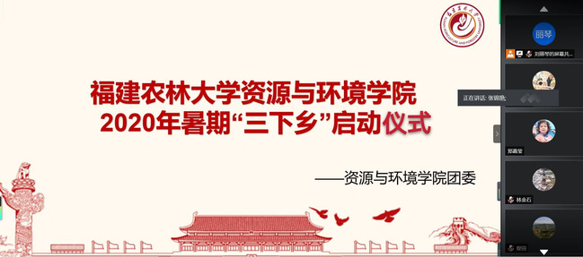 7月18日下午,资源与环境学院通过腾讯会议在线举行2020年暑期“三下乡”启动仪式。学院党委副书记修新田、全体辅导员、学院团学干部、学生代表参加启动仪式。启动仪式由学院团委书记张锦艳主持。