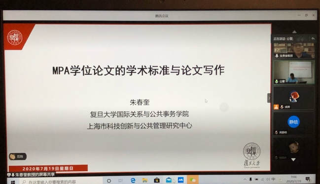 7月19日上午,公共管理学院依托腾讯会议平台举行了2020年研究生导师培训班第五专题辅导报告暨第122期海峡公管讲坛,第四届全国MPA教育指导委员会委员,中国管理现代化研究会公共管理专业委员会副理事长、复旦大学国际关系与公共事务学院博士生导师朱春奎教授应邀做了题为“MPA学位论文的学术标准与论文写作”的学术讲座。管理学院院长苏时鹏主持讲座,学院全体研究生导师和部分研究生共200多人在线聆听了本次讲座。