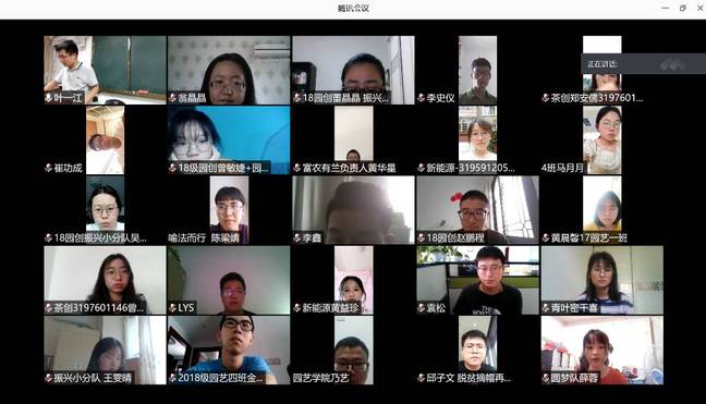 7月24日,园艺学院线上举办2020年暑期“三下乡”实践活动出征仪式暨安全教育大会,会议主题是“新时代、新担当、新作为”——“小我融入大我,脱贫攻坚勇担当”,院党委副书记周娟娟、指导老师马翠兰、方庭和辅导员在院办二楼会议室召开会议, 15支社会实践队(其中校级立项10支)135名学生线上共同参与,院团员青年工作联络员叶一江主持会议。