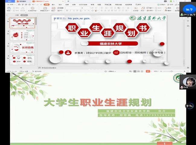 7月29日晚,由院学生会主办、科创部承办的第七届大学生职业规划大赛在腾讯会议平台举行。本次比赛邀请福建省职业规划大赛一等奖获得者卢裕弘,辅导员杨小飞及康学梅担任评委。选手个人作品展示大赛共分为选手PPT展示、线上答辩两个环节。5名参赛选手分别从自身定位、环境分析、职业分析、具体规划四个方面讲述自己的职业规划,评委进行点评并提出相关问题让选手回答。本次职业规划大赛的举办,既强化普及了大学生职业规划的理念,又提高了学院学子的职业素质与就业能力。