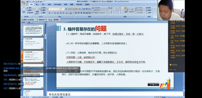 本次培训内容涵盖安全事项、疫情防控卫生、宣传报道写作等。培训会上,保卫处和校医院老师分别就疫情防控、行车安全、财产安全、地质灾害预防、个人卫生防护等方面进行了详细的说明,嘱咐各暑期社会实践团队务必遵守防疫纪律,在确保安全的前提下“以个人实践为主”,“就近就便”开展暑期社会实践活动。东南网编辑老师结合自身新闻写作及社会实践经验,从新闻稿件写作和配图两方面向与会人员详细阐述了“三下乡”宣传报道稿件的写作要点,并指导学生在实践过程中,寻找有趣的人和事,彰显活动亮点,从服务对象和读者角度出发,呈现活动的价值。
