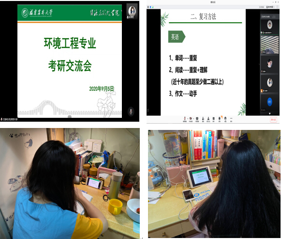 2020届优秀考研代表王声韩、林明兰和池冰婕三位同学分别从自身考研经历和体会出发,详细地为同学们讲解了备考期间的注意事项,包括心态调整,辅导资料、复习方法、复习时间安排以及调剂、疫情期间如何提高复习效率等问题,并在互动环节中,针对同学们提出的多方面问题进行了一一讲解。