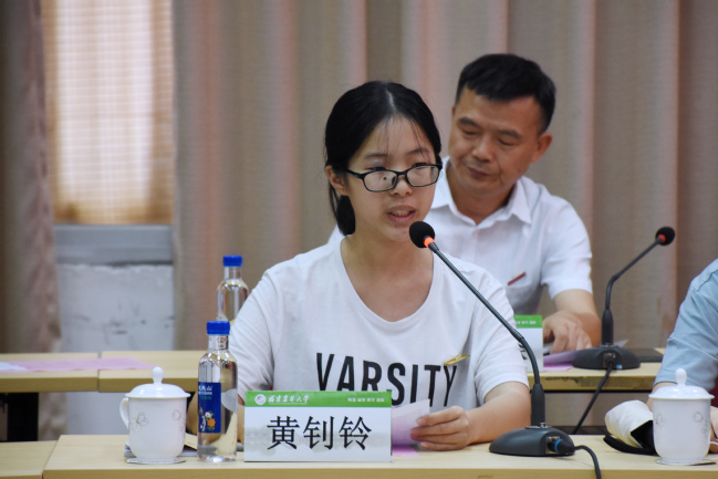 我是植物保护学院的黄钊铃,来自福建三明。今天,我要发言的题目是《心中有榜样,脚下有力量》.