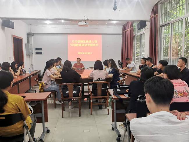 集中学习后,学院第一时间组织全体新生以班级为单位,召开先进人物引领教育主题班会,讨论分享交流观看先进人物事迹后的体会。学院党委班子肖红新、陈清西、周娟娟、曾黎辉、郭玉琼全部深入学生班级,参加并指导主题班会活动的开展,与学生亲切交流,气氛热烈。