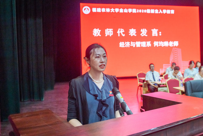 3位教师代表分别发言,勉励同学们珍惜大学时光,学会求知、学会创新、学会做事、学会做人,将四年的全部精力献给青春的理想与追求,努力成为一个热爱学习、懂得规划、拥有美好品格的人。