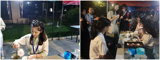 在“桂花飘香,以茶会友” 茶艺体验活动的现场,准备了桂花茶和不同种类的月饼供现场师生品尝,大家“举杯邀明月、对影成三人”,一起赏月、吃月饼、喝桂花茶品悟人生,感受中国博大的茶文化和传统节日文化。