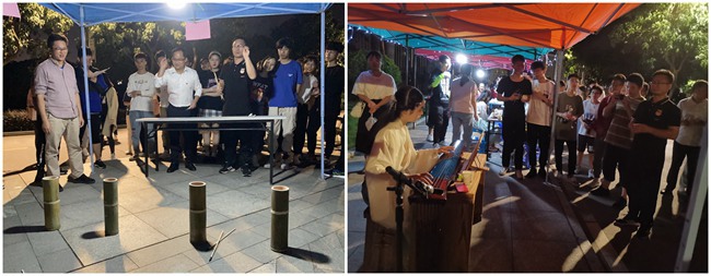 中秋文化DIY活动共分为8个子项,包含了“金秋寻香,‘饼’承情怀”月饼制作、“投壶问礼,观德行”投壶活动、“逛花灯,猜灯谜”活动、“巧手妙笔,点石成画” 鹅卵石彩绘、“桂花飘香,以茶会友”茶艺体验、“琴音雅韵,品古乐”古琴演奏、“‘博’出精彩,‘饼’承情怀”博饼活动、“点亮心愿树,爱心不止步”许愿活动等8项子活动。