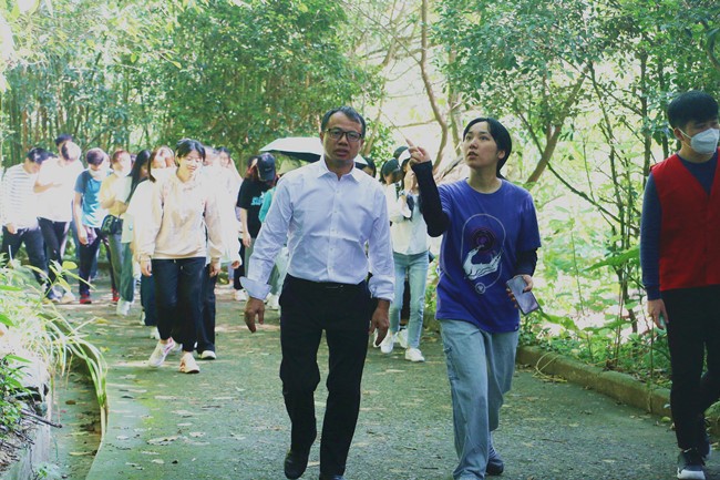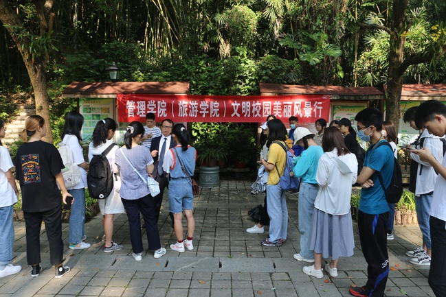 10月1日早上,管理学院在大学生创新创业园开展“文明校园美丽风景行”登山活动。院党委副书记陈建辉、全体辅导员和学生代表160名余人参加了活动。 登山活动分五批进行,每批三十人,均有老师带队。在登山途中,生态文明讲解志愿服务队的同学不时为大家讲解,从百草园到兔园,再到百竹园。 “文明校园美丽风景行”登山活动是管理学院国庆系列活动之一,通过此次活动,不仅丰富了同学们国庆中秋假期生活,增加了学生对校园植物的了解与认识,同时也加深了学生对学校的热爱和对生态文明建设重要意义的认同感。
