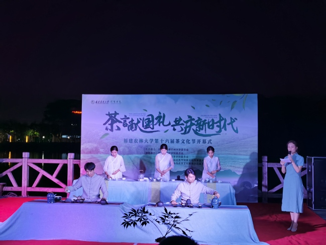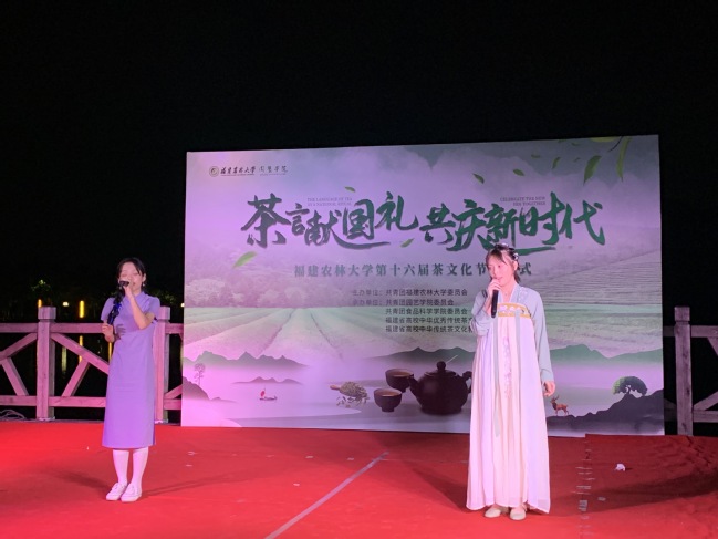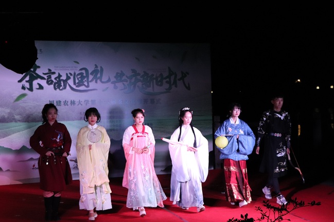 茶文化节茶艺表演《一片树叶的故事》向观众讲述了漳平水仙茶茶产业助力乡村振兴的故事;校汉服协会带来的走秀表演,赢得了观众的热烈掌声;院十佳歌手张涵演唱的歌曲《红旗飘飘》,表达了时代新人对祖国的热爱与自豪,将现场气氛带到高潮;采茶舞表演以翩翩舞姿描绘出采茶美景,用舞蹈艺术将茶叶文化弘扬;花艺茶艺融合表演《花礼献国庆,茶艺赞古今》更是让人耳目一新,在《但愿人长久》的歌声当中,晚会落下帷幕。