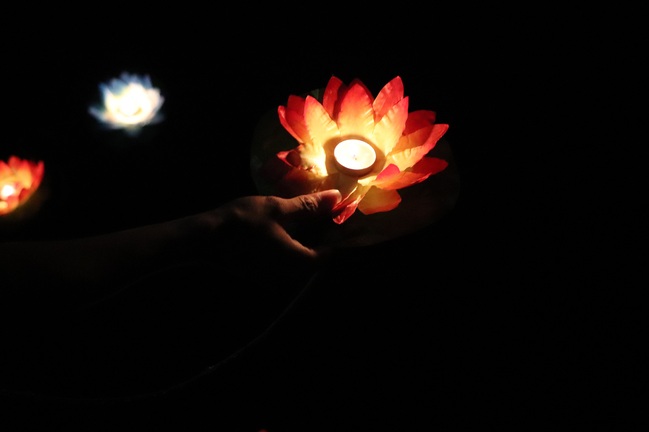 晚会结束,农林学子在观音湖畔放了花灯,祝愿祖国繁荣昌盛,祝福母校明天更辉煌。