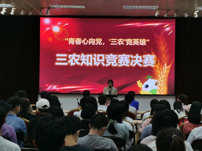 10月4日,农学院于百悟讲堂举办了“青春心向党,‘三农’竞英雄”“三农”知识竞赛决赛。来自农学院、林学院和动物科学院(蜂学学院)的12名参赛选手参加比赛,副院长吴仁烨、种子科学与工程系副主任张立武、植物科学与技术系老师范凯担任评委。学院团委书记和学生代表共141人观看了比赛。