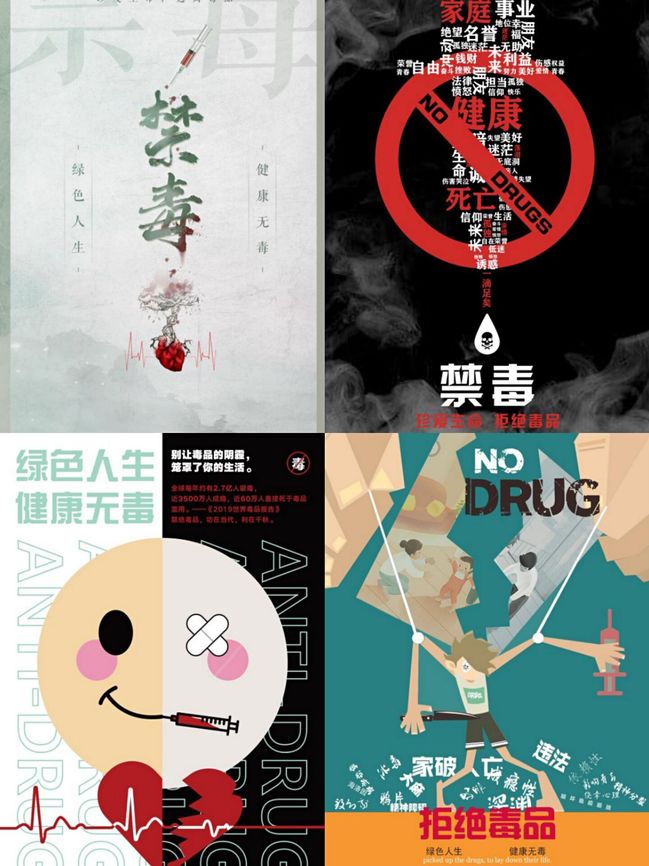 开展了以“绿色人生,健康无毒”为主题的禁毒海报作品征集活动。活动通过海报设计的形式展现毒品危害,同时拓展同学们的创作思维,提升广大青年学生识毒、防毒和拒毒能力,传递自觉“防毒”“抗毒”理念。同学们纷纷点燃创意火花,充分发挥设计技能,创作出一幅幅各具特色、主题鲜明的海报作品。
