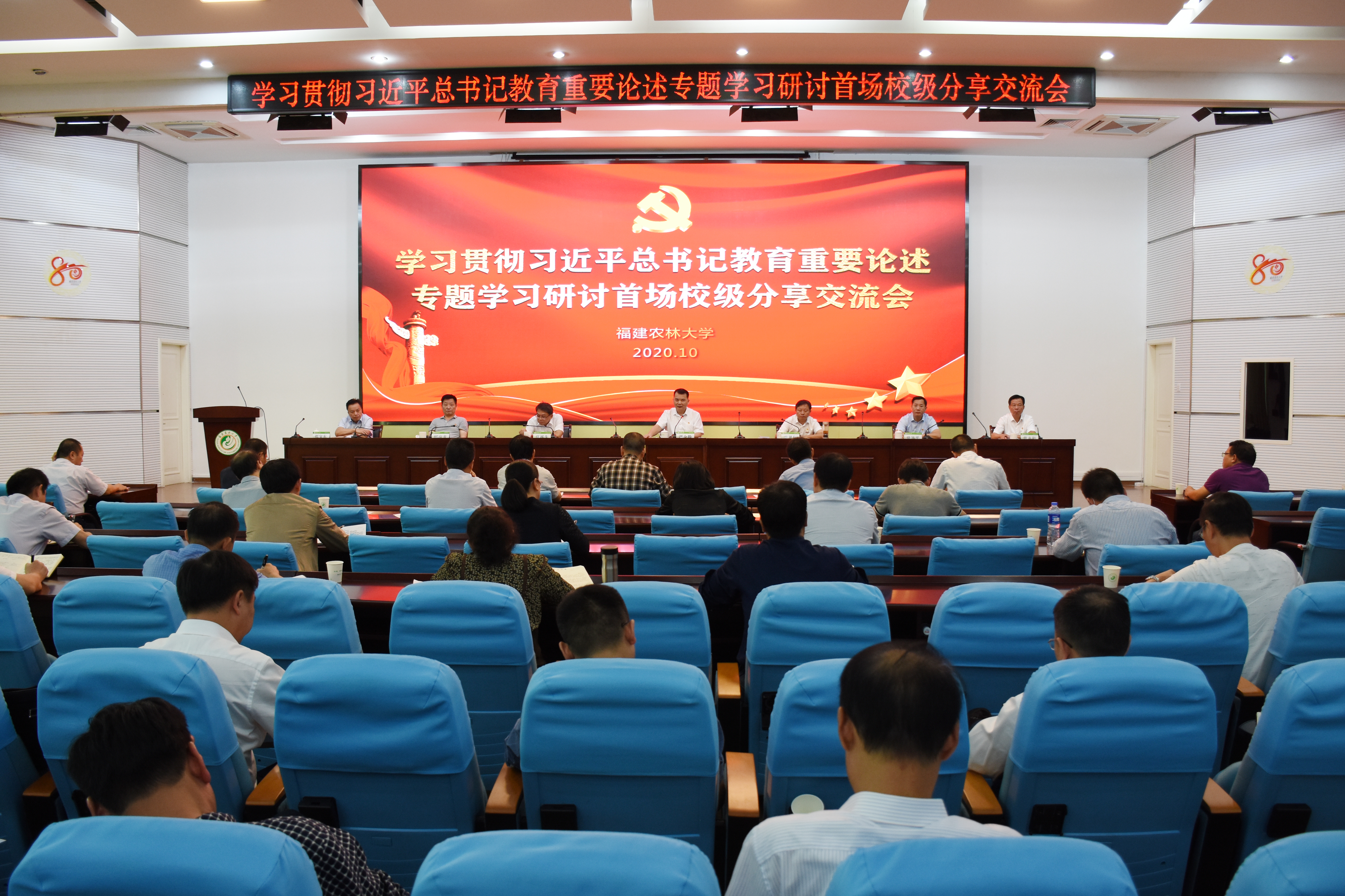 10月8日下午,我校在禧强楼学术报告厅召开学习贯彻习近平总书记教育重要论述专题学习研讨首场校级分享交流会,校领导及中层干部代表围绕“教育事业发展的‘定海神针’——坚持党对教育事业的全面领导”这一主题,结合自身学习和工作实际分享了学习心得和体会。校党委书记严金静主持会议并讲话。校党委副书记、校长兰思仁,校党委副书记庄祥生、曾华平,校纪委书记邱应龙,校党委常委、副校长黄炎和,副校长郑宝东出席会议。