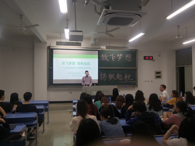 10月8日晚上,艺术学院园林学院在金山校区诚A-302教室组织召开“放飞梦想,扬帆起航”2021届毕业生考研报名动员会,学院党委书记陈为德、院长张飞萍出席会议并作动员讲话。会议由学院党委副书记曾海滨主持。