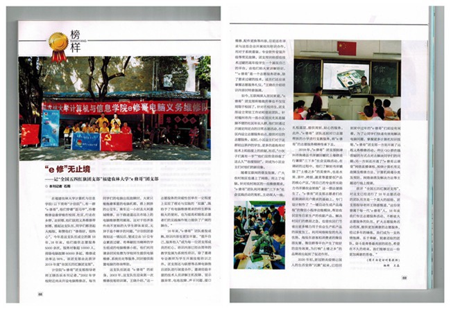 近日,计算机与信息学院“e修哥”团支部典型事迹喜获《福建青年》刊物宣传报道。“e修哥”团支部自成立以来,先后荣获福建省暑期“三下乡”社会实践活动优秀团队、开元kaiyuan(中国)青年五四奖章、开元kaiyuan(中国)“五四红旗团支部”、福建省“五四红旗团支部”。团支部坚持开展志愿服务活动,十八年来志愿服务5000多次,服务对象10000多人,志愿服务时长达50000多个小时,足迹遍布八闽大地,创新开展“我为党旗添光彩”进社区志愿服务、“大手拉小手”赴洪塘小学支教、自编自导自演话剧《“e修哥”成长记》《“e修哥”的历程》等系列特色团学活动。在疫情防控期间,团支部积极响应共青团中央号召,组织团员到社区参加志愿服务活动。团支部事迹被人民网、新华网等主流媒体报道,在全省学生志愿服务工作方面取得较大反响。