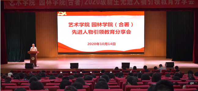 10月14日晚,艺术学院园林学院于旗山校区大报告厅开展先进人物引领教育活动分享交流会,学院全体政工干部、2020级博硕士及本科全体新生参加分享交流会。分享交流会由学院党委副书记曾海滨主持。