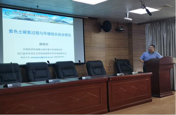 周明华从农田生态系统中活性氮污染科学问题入手,从紫色土坡耕地碳氮循环过程及损失通量和如何协同减排NO3-和N2O且保障作物产量等方面系统介绍中科院盐亭紫色土农业生态试验站近期主要研究工作。