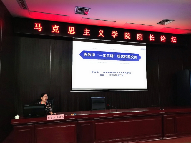 10月17日上午,在马克思主义学院院长论坛上,李宝艳教授作了《思政课“一主三辅”教学模式创新》的主题发言;在“形势与政策”课“讲好中国故事·上好思政课程”教学论坛上,罗贤宇老师作了《习近平生态文明思想在福建的孕育与实践——福州西湖美丽传承的故事》的示范教学,他们的精彩发言与授课,受到了与会老师的高度认可。