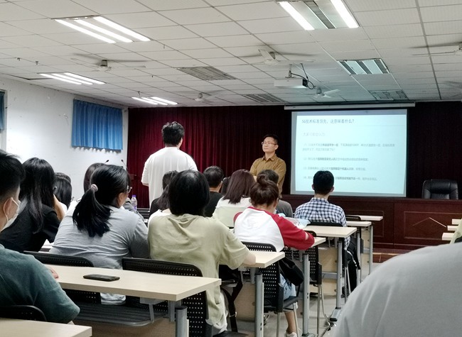 10月5日,计算机与信息学院院长陈日清教授在田家炳楼C413教室作了题为《在全球化背景推动下,中国5G战略实现跨越式领先》的新一代信息技术专题讲座,2020级全体研究生和2017级网络工程专业学生参加了本次讲座。