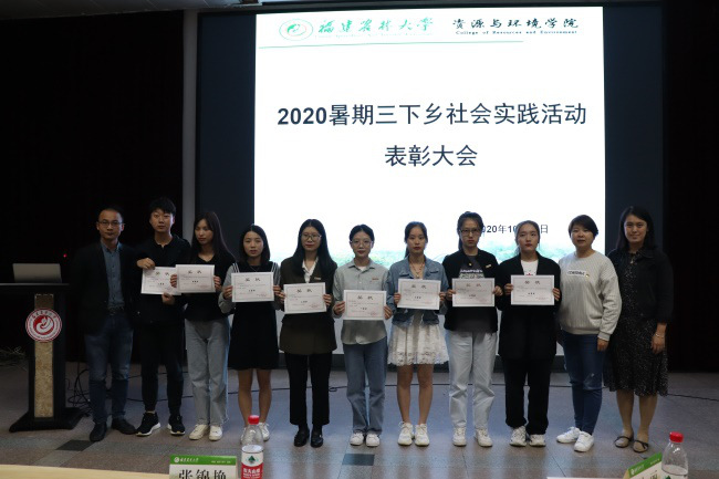 大会还为获奖的实践团成员颁发了荣誉证书。据悉,今年暑期,按照学校团委统一部署,资源与环境学院共组建了10余支“三下乡”社会实践活动队,根据今年疫情特殊情况,各社会实践活动队积极创新社会实践活动形式,采用“云端+实践”三下乡全新模式,开展生态保护、脱贫攻坚、科技支农、红色记忆寻访等类别的“三下乡”实践活动。实践队员发扬艰苦奋斗、无私奉献的精神,深入基层群众,开展了卓有成效的实践活动,特别是,青春河小禹实践团队先后赴长汀、泰宁等地的20余镇、100余村,巡河近500公里,采集10余个监测水样,走访1000余农户并发放3000多份护河知识宣传册,完成3篇水质检测、水污染防治等调查报告,为当地河流保护工作建言献策,受到了社会各界的广泛关注和好评。
