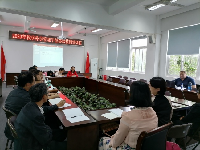 为进一步推进校院二级管理,提升学校外事管理干部业务素质,推动学校教育国际化的顺利开展,我校举办了“2020年秋季外事管理干部英语技能培训班”,来自国际学院、艺术园林学院、园艺学院、材料学院、经济学院、动物科学学院(蜂学学院)、计算机与信息学院、国家菌草工程技术研究中心、校学生处、审计处、国资处等单位的20名外事联络员和管理干部参加了此次英语培训。