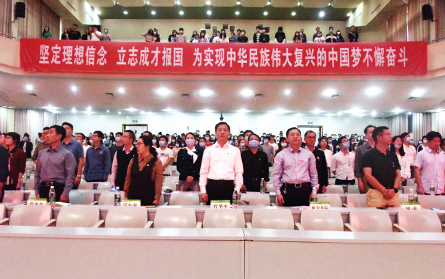 10月27日下午,我校在大礼堂举行2020级新生先进人物引领教育活动校级分享交流会,分享交流会通过远程直播在旗山、安溪两个校区同步开展,新生代表800多人参加分享交流会。校党委副书记曾华平出席分享交流会,宣传部、学工部、教务处、研究生院、校团委等相关部门负责同志,各学院党委副书记、新生辅导员参加分享交流会。