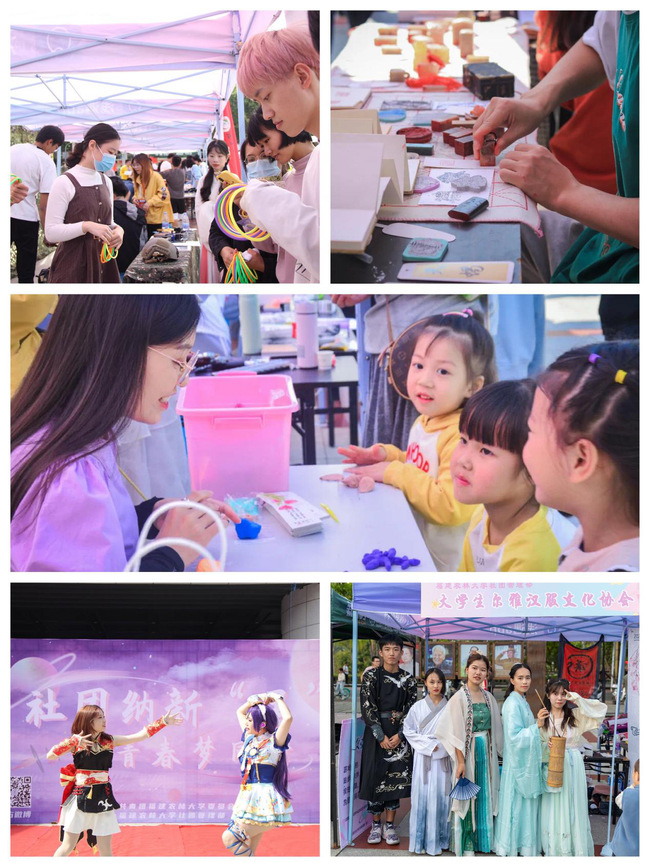 今年延续以往的社团特色游戏和集章兑奖活动,为纳新活动增添了趣味。同学们穿梭于各个社团帐篷间,收获满满。活动现场,各个社团轮番上阵,进行风采展示,大学生尔雅汉服协会大展古风之美,书法美术协会现场展示书法写作过程,茶文化协会邀请品铭,彰显了古文化的博大精深,武术协会、羽毛球协会、网球协会等一系列体育类协会,大展身手,以技服人,获得了场上的阵阵掌声;除此之外,还有三农爱心协会、小动物保护协会、电商创新创业协会等学术科技和创新创业类社团也纷纷拿出他们的社团作品和奖项,吸引了许多同学加入。各协会百花齐放,展现社团特色的同时,也彰显了当代青年学子的青春活力。