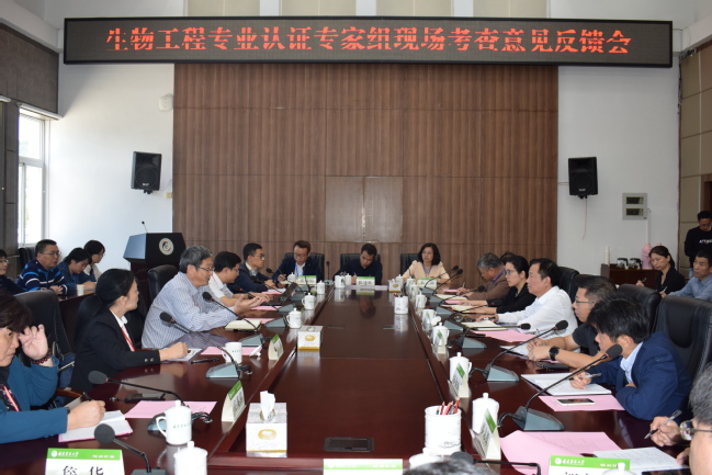 10月26日至28日,以修志龙教授为组长,南京工业大学韦萍教授、江苏恒顺醋业余永建高工和华东理工大学庄英萍研究员(见习专家)为成员,桂林医学院杨兆为秘书的中国工程教育专业认证协会认证专家组进驻我校,对生物工程专业进行现场考查。校长兰思仁、副校长黄炎和、有关职能部门负责人、生命科学学院领导班子和生物工程系教师代表等参加了见面会和反馈会。