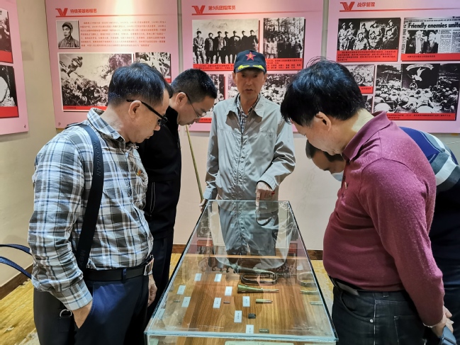 一幅幅黑白照片、一件件志愿军使用的实物,仿佛将全体党员带回上世纪50年代。讲解员回顾了我国抗美援朝的伟大意义,讲述了志愿军战士在战争的残酷中展现出不怕牺牲、保家为国的伟大的抗美援朝精神!全体党员都从心底致敬我们最可爱的人!