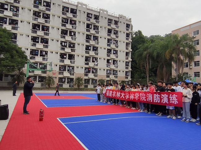 11月8日下午,林学院在南区篮球场组织消防安全演练。校保卫处陆语老师、辅导员雷美玲以及学院350名学生代表参与本次消防安全演练。