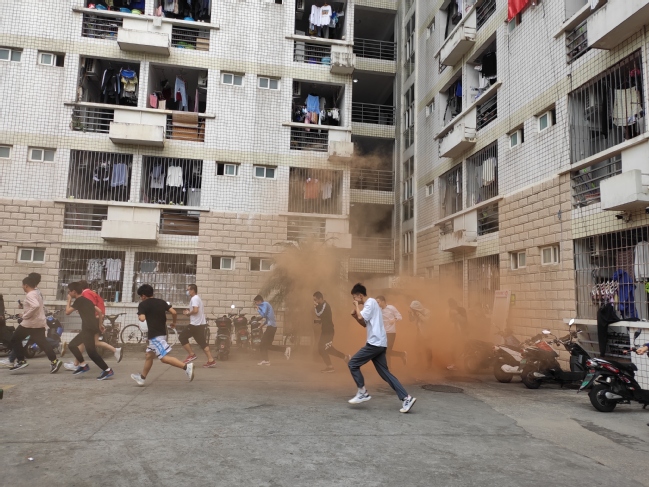 在演练前,林学院学生会督导部认真制定消防演练活动方案,明确任务和要求。正式开始时,工作人员快速集合,按警铃、放烟雾弹。警报一响,学生迅速、有序地到达指定地点。陆语和雷美玲进行点评并向各级学生介绍一些必备的消防知识,并示范如何使用灭火器灭火。演练过程中,同学们严肃对待,紧张有序,认真学习灭火知识。本次活动通过组织学生开展消防演练,提高学生遇到火灾、突发事件的自救、互救的意识和能力。