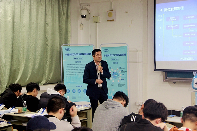 11月11日晚,计算机与信息学院在创新楼205教室举办了宁德时代新能源科技股份有限公司校园专场招聘会。宁德时代新能源科技股份有限公司测试验证中心经理瞿毅、智能制造部经理马林、招聘经理詹铭敏等5人到校进行招聘宣讲,学院2017级毕业生及机电学院部分毕业生参加了此次专场招聘会。招聘会期间,学院党委副书记(主持)张金山、院长陈日清与招聘部门负责人进行了交流,双方就各年级学生到宁德时代开展实习、校企协同育人工作、科研合作等进行了深入探讨,均表达了深入开展合作的意愿。宁德时代相关负责人表示,此次招聘是应我校科学技术发展研究院、机电工程学院、计算机与信息学院、材料工程学院主要负责人一行于11月3日赴宁德时代洽谈产学研及校企合作的邀请,宁德时代表示对双方的合作期待较高。