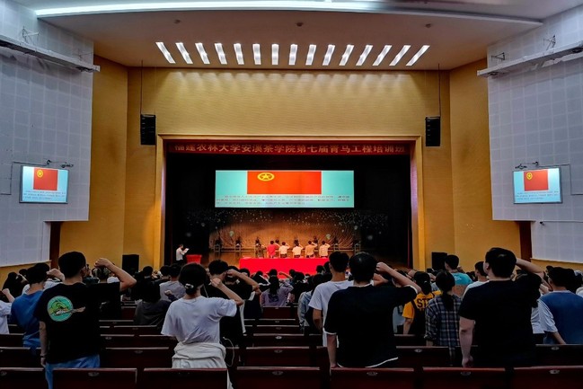 11月18日晚,安溪茶学院“学习贯彻党的十九届五中全会精神——凝聚青春力量,践行时代使命”第七届“青马工程”培训班开班仪式在校区明德报告厅举行。校区·学院党委副书记李治洲,校区学工部部长纪文元,全体辅导员以及培训班全体学员共250余人参加了开班仪式。开班仪式由团委指导老师杨小飞主持。
