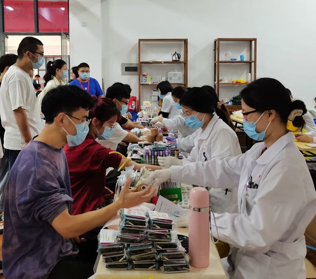 活动前期,学院红十字分会通过组织同学们观看无偿献血相关知识的影片,为有意献血的同学普及献血知识。活动当天,同学们积极参与,秩序井然,悉听志愿者讲解献血注意事项并完成填表、测温、体检、验血、抽血等一系列献血相关的流程。现场志愿者们还为同学们准备了葡萄糖水、小面包等物品以缓解身体不适。献血后,同学们可获得献血证书以及极具纪念意义的小礼品。